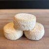 Fromage frais de Haute-Savoie, en fabrication fermière avec un fumé délicat pour un équilibre parfait entre notes caprines et notes fumées.