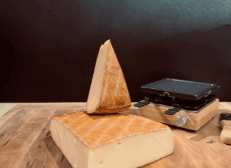 C’est à Villaz, petit hameau sur les hauteurs du bassin Annécien, que nous nous procurons notre Raclette, pour un affinage minimum de 5 mois. Idéale pour le célèbre plat Savoyard, elle se déguste également très bien au couteau. Cette meule de 6 kg, à la particularité de fondre facilement pour accompagner vos pommes de terre, mais sa pâte agréable à l’état naturel est un bel argument sur votre plateau de fromages.