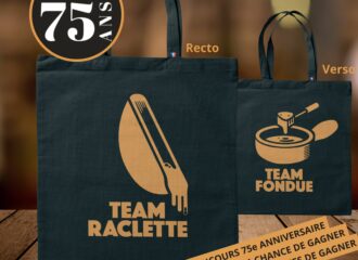 Pour les 75 ans de la Crèmerie des Marchés, nous vous proposons notre sac en toile tissé Jacquard Team Fondue Team Raclette!